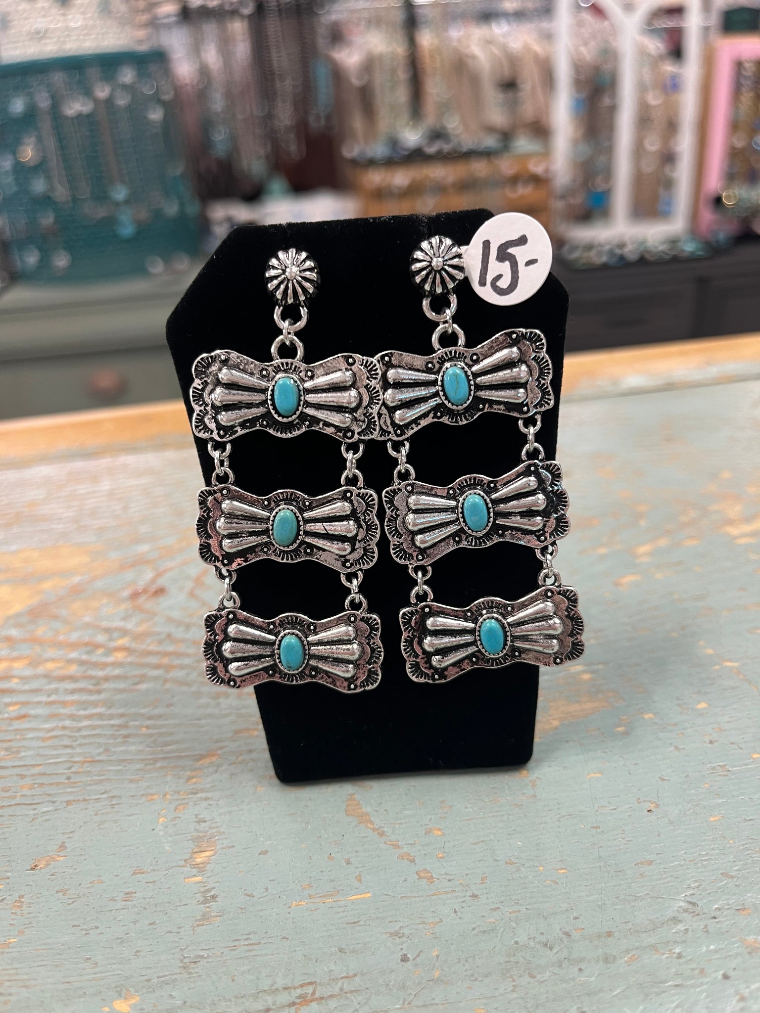 Post back earrings with bow tie dangles