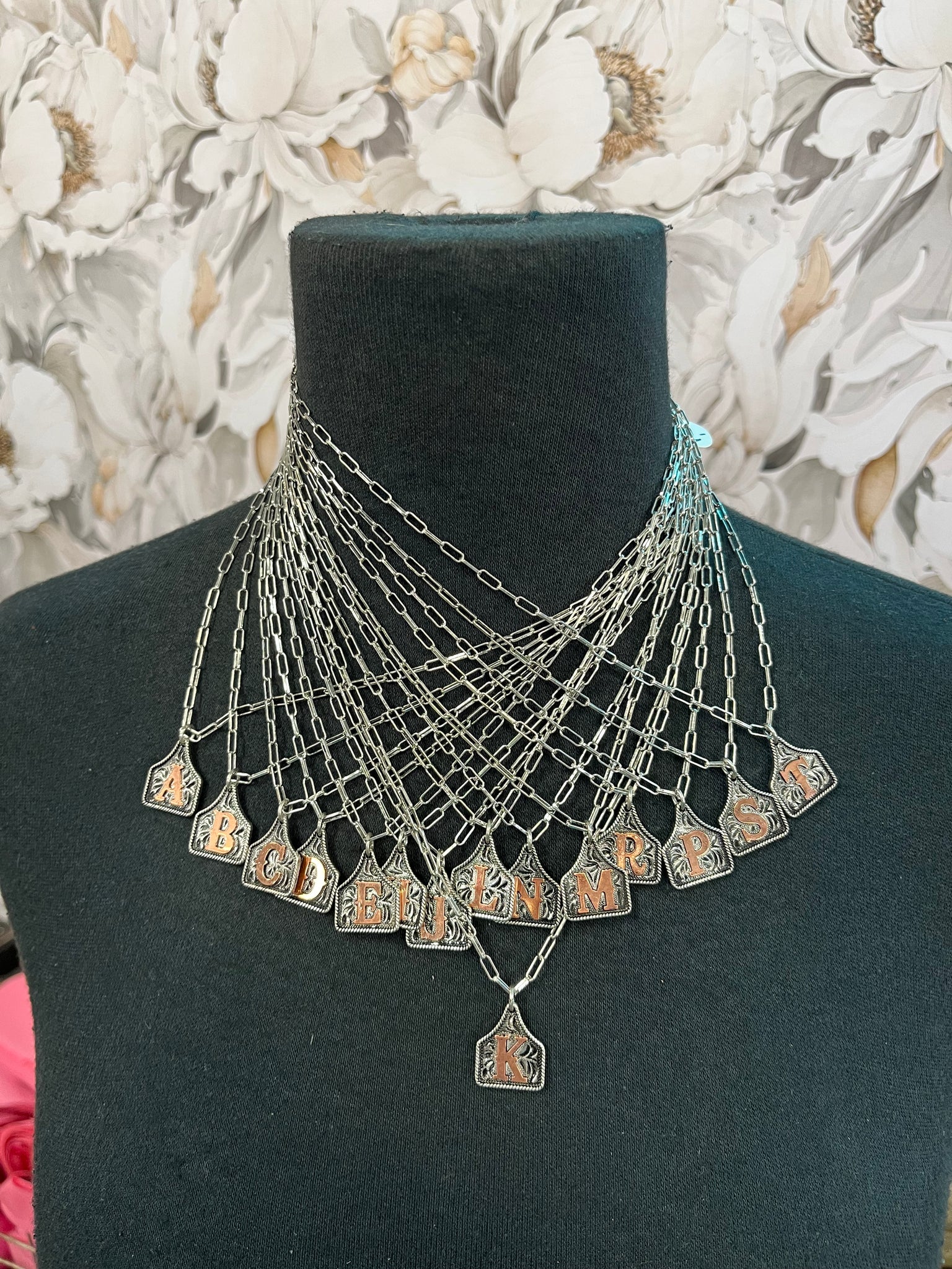 Small tag necklace with faux silver and copper
