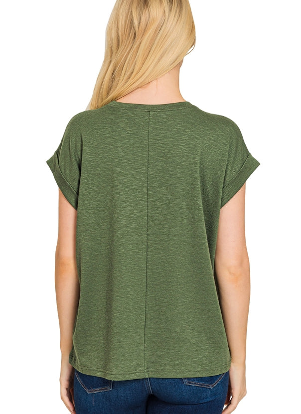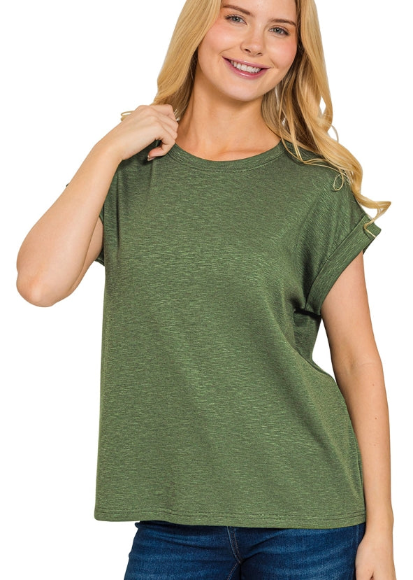 COTTON MODAL SLUB ROLLED SLEEVE TEE