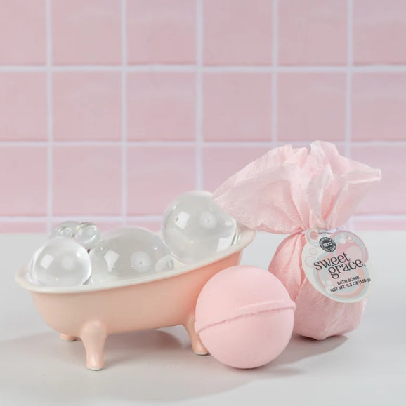Splish splash Sweet Grace is taking a bath! Now you can literally bathe in Bridgewater's #1 best-selling fragrance. Our Sweet Grace Bath Bombs are 5.3 oz of heavenly bliss and tons of fizzy fun.