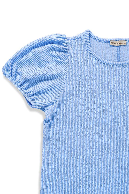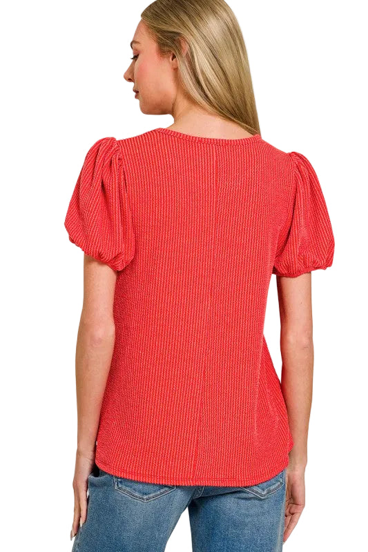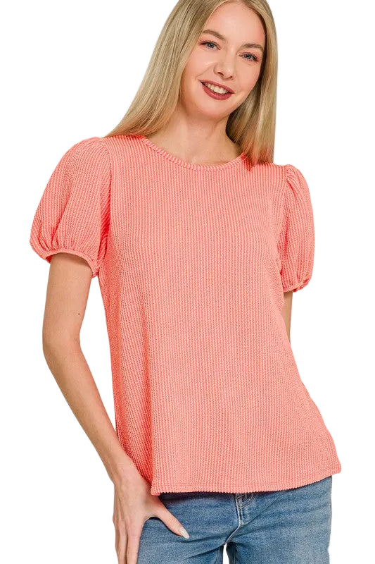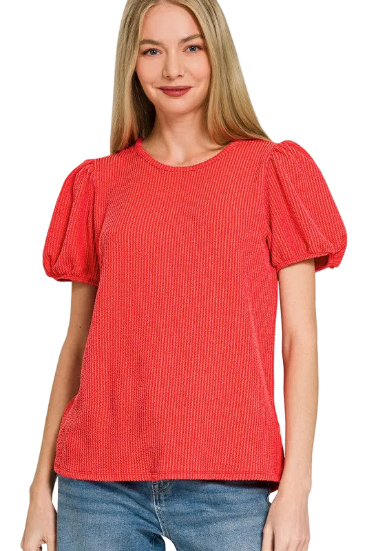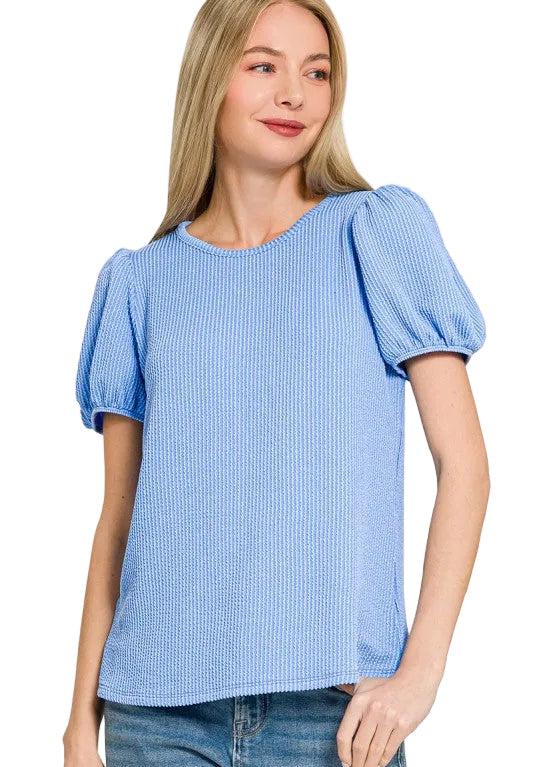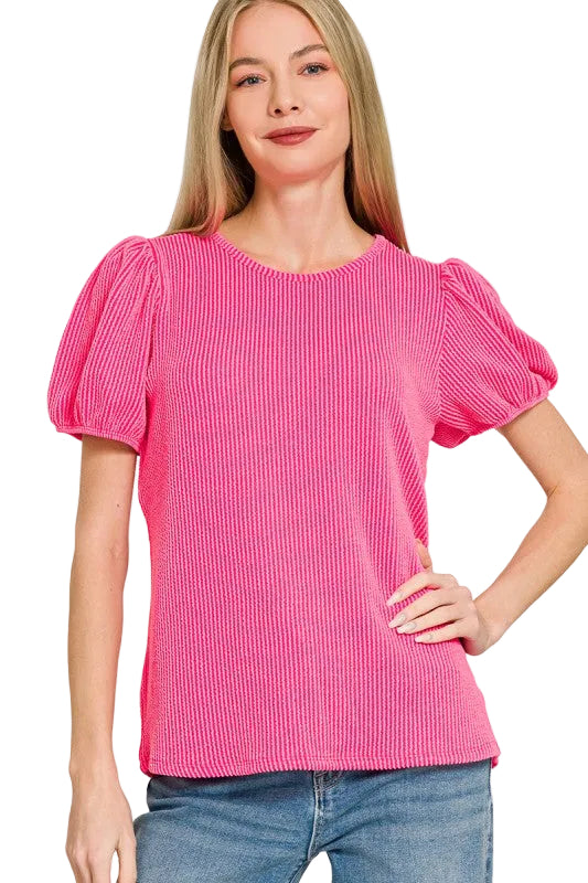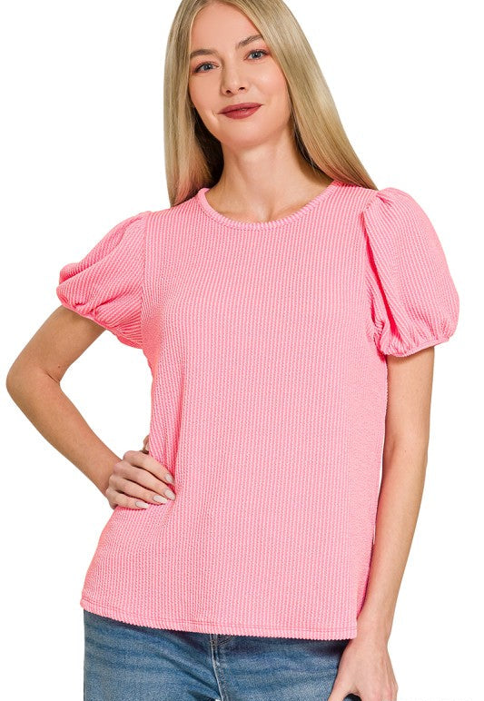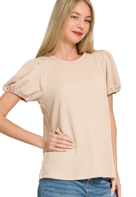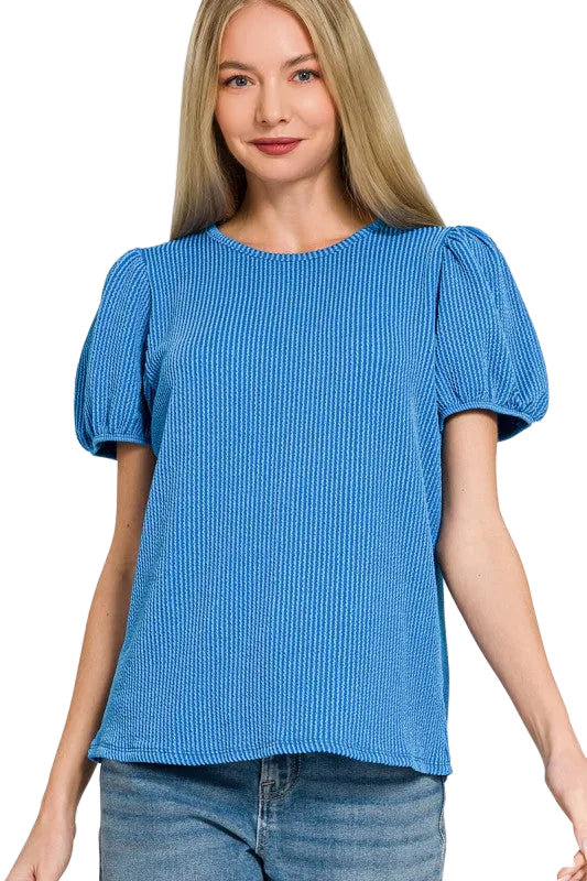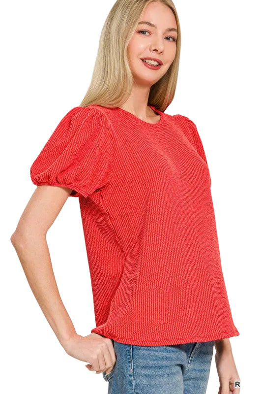 Ribbed puff sleeve top with elastic